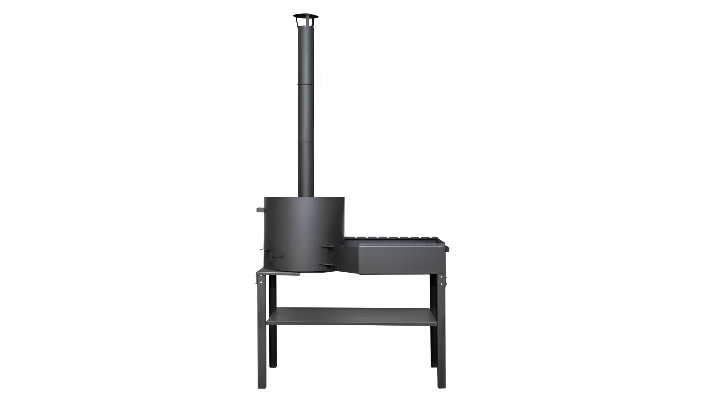 Прочная конструкция, защищающая от дождя и солнца. Продуманные модели с полками и отделениями для дров делают процесс готовки комфортным.