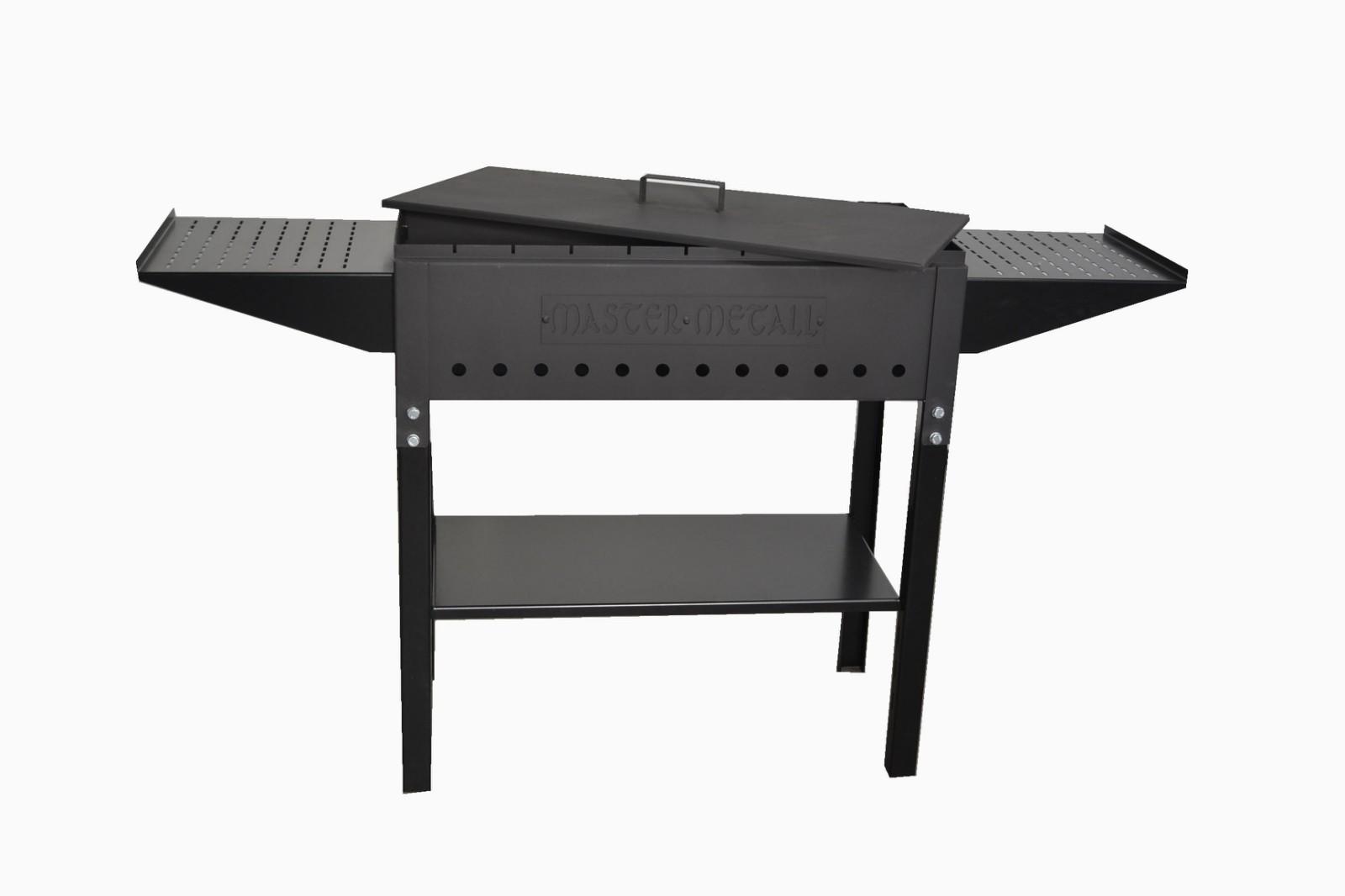 Удобный вариант для приготовления шашлыков, с рабочей поверхностью под соусы, посуду и аксессуары.